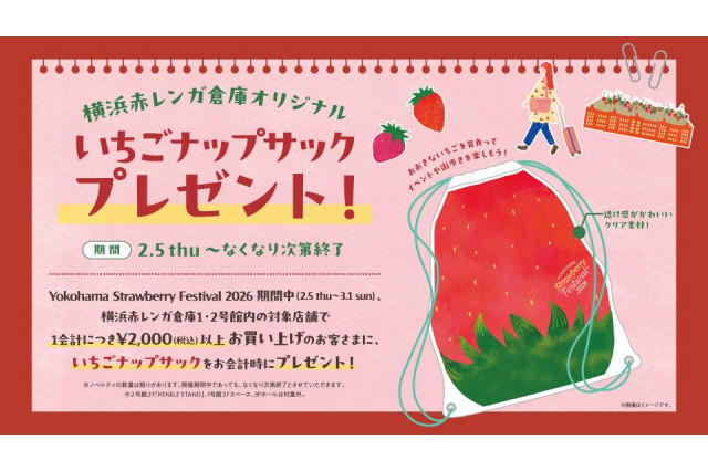 2/5(木)からスタート!館内でのお買い物で「いちごナップサック」をゲットしよう!