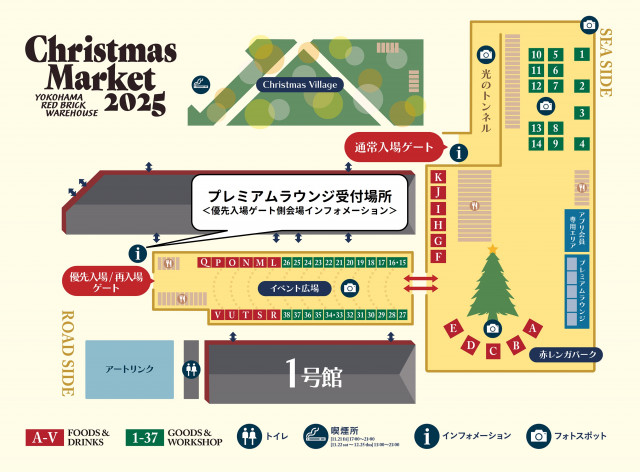 プレミアムラウンジ、クリスマスマーケット会場内にお手洗いはございません。