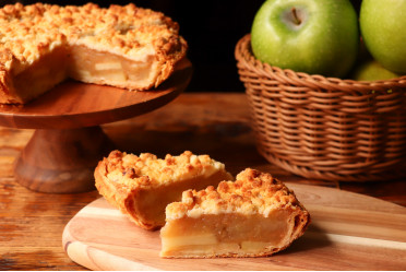 たっぷりのりんごを重ね、シナモン香る紅茶クランブルをトッピングして焼き上げています。