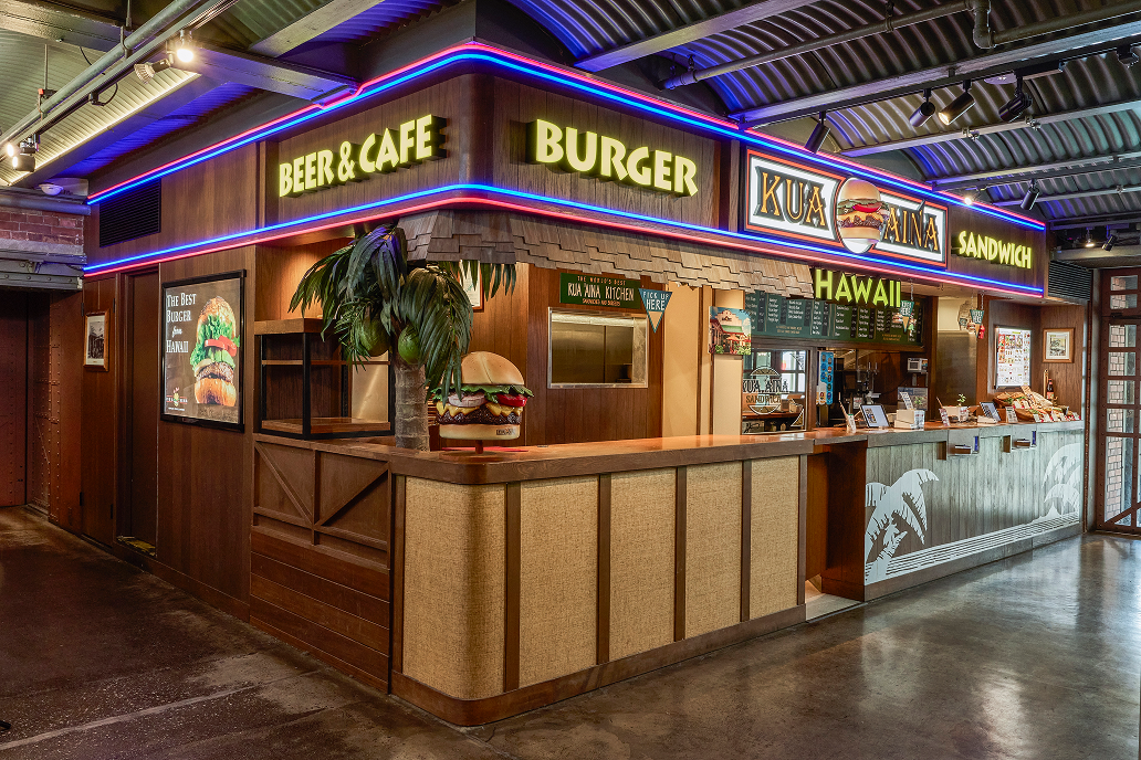 1975年5月、KUA`AINAはハワイ・オアフ島ノースショアにある小さな町「ハレイワ」で誕生しました。オーナーのテリー・トンプソン氏監修のもと、お店でひとつづつ手作りするハンバーガーが世界中で愛され続けています。溶岩石を敷き詰めたグリルで焼き上げるビーフ100%のパティ、完熟アボカド、新鮮野菜をオリジナルバンズで挟んだハワイアングルメバーガーをぜひお楽しみください。