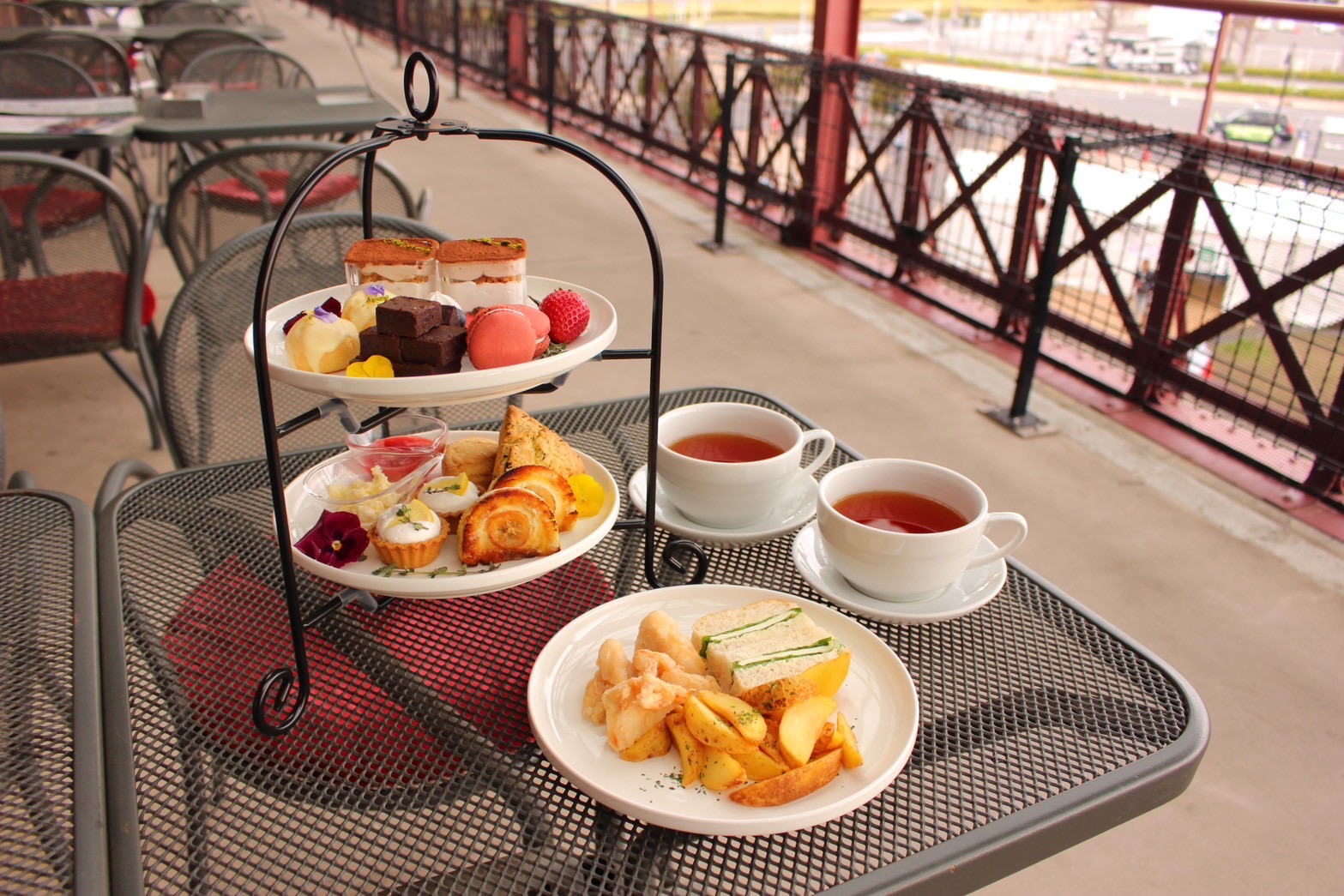 みなとみらいや横浜港を一望できる眺めの良いバルコニー席。海からの風を感じながら至福の時間を過ごせます。