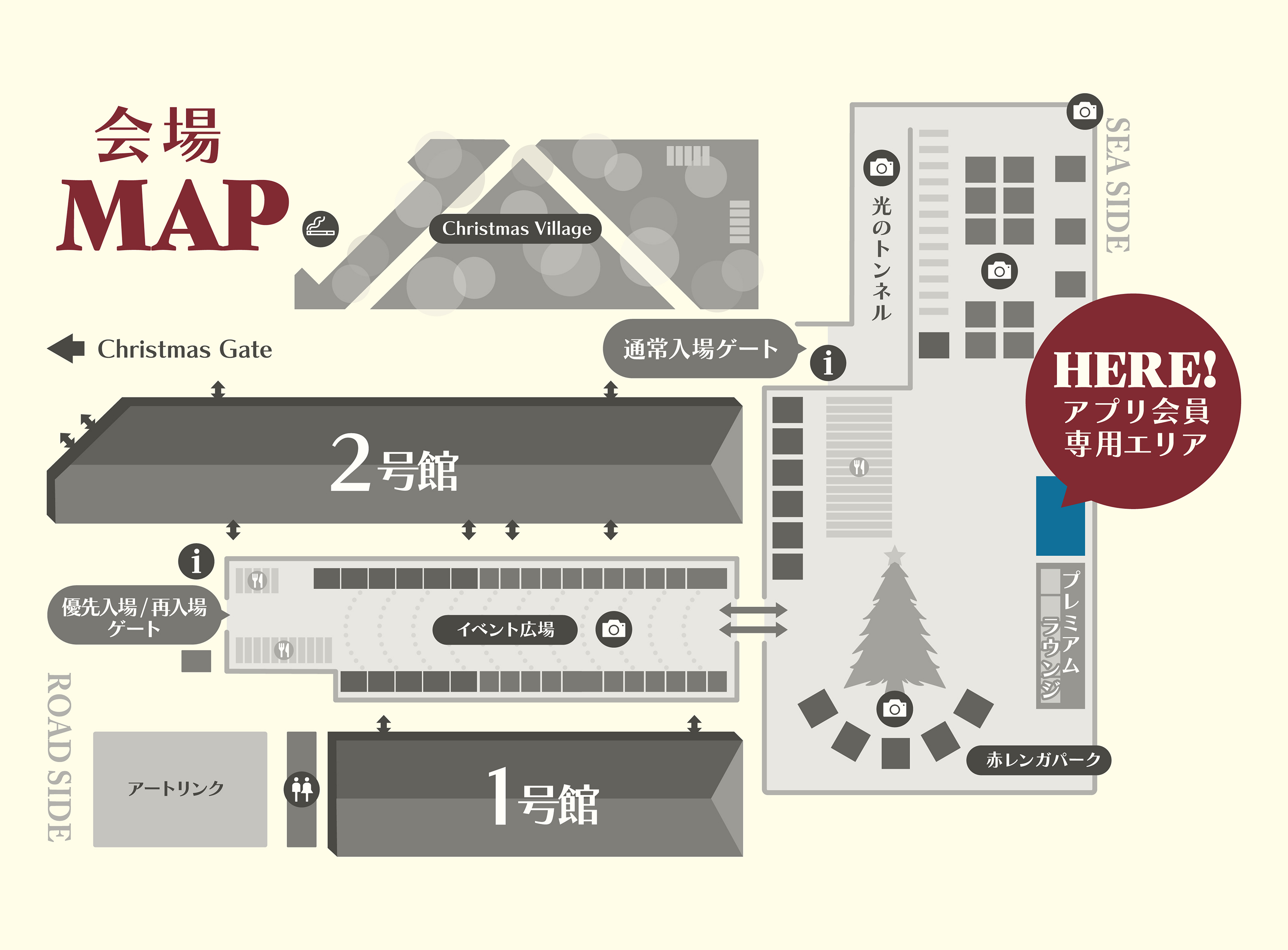 - 通常入場ゲート側会場インフォメーション、