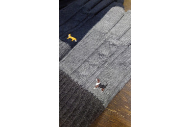 ケーブル編みニット手袋M イヌGY・キツネNV