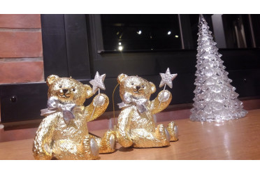 クリスマスの飾り付けにゴージャスなゴールドの可愛らしいクマさんのオーナメントはいかがですか?輝きを放つこと間違いなしのオーナメントとなっております♪