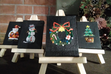 7cm×5cmくらいの大きさの、とても小さいキャンパスボードです。