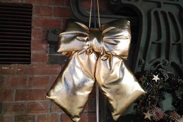 ゴールドの大きいリボンをクリスマスの飾りにいかがですか♪