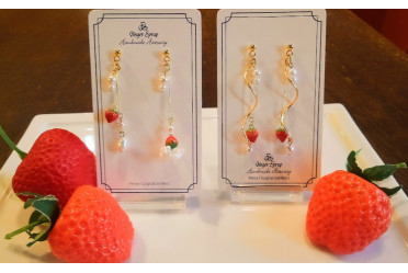 ミニチュアなイチゴと一緒に揺れるパールビーズや