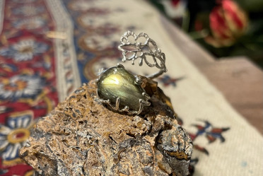 ヴィンテージ調の装飾の美しいリング。天然石を中心に、お花の様に広がります。