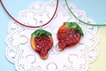 いちご好きにはたまらない可愛いガラスのペンダント。