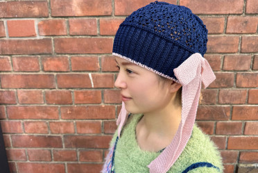 繊細なレース編みが目を引く、ニットビーニー♪