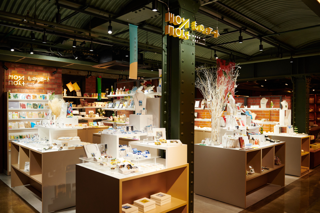 ―「芸術」の最初のキッカケをつくるお店―「使えるアートな雑貨」を若手アーティストと共に作っているリフレクトアート株式会社が展開する、一点物のお店『ものとアート』。印刷ではなく、すべて手描きした雑貨や文具。手作業でひとつずつ制作した、ガラスや陶器などのアクセサリー。アーティスト独自の視点で表現する「赤レンガ限定商品」や、捨てられていくものを芸術で生まれ変わらせる「アップサイクル商品」など、わくわくする、世界に一つだけの宝物を探すアート空間です。