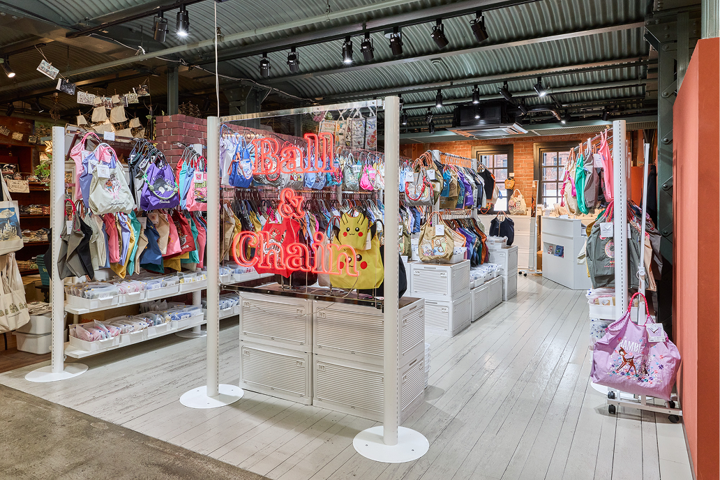 エコフレンドリーな生活の第一歩になるようにと願って誕生した「Ball&Chain」。大切に使い続けたいと思え、普段のファッションにも馴染み、使うたびにワクワクするような、おしゃれなショッピングバッグを展開します。横浜赤レンガ倉庫店は、「Ball&Chain」の IPコンテンツに特化した新しいレーベル、「YELLOW LABEL」の記念すべき第 1 号店。従来のファッションやアートを中心とした「BLUE LABEL」に加え、「YELLOW LABEL」では日本が世界に誇るカルチャーであるキャラクター、アニメーション、ゲームとのコラボレーションラインが登場します。