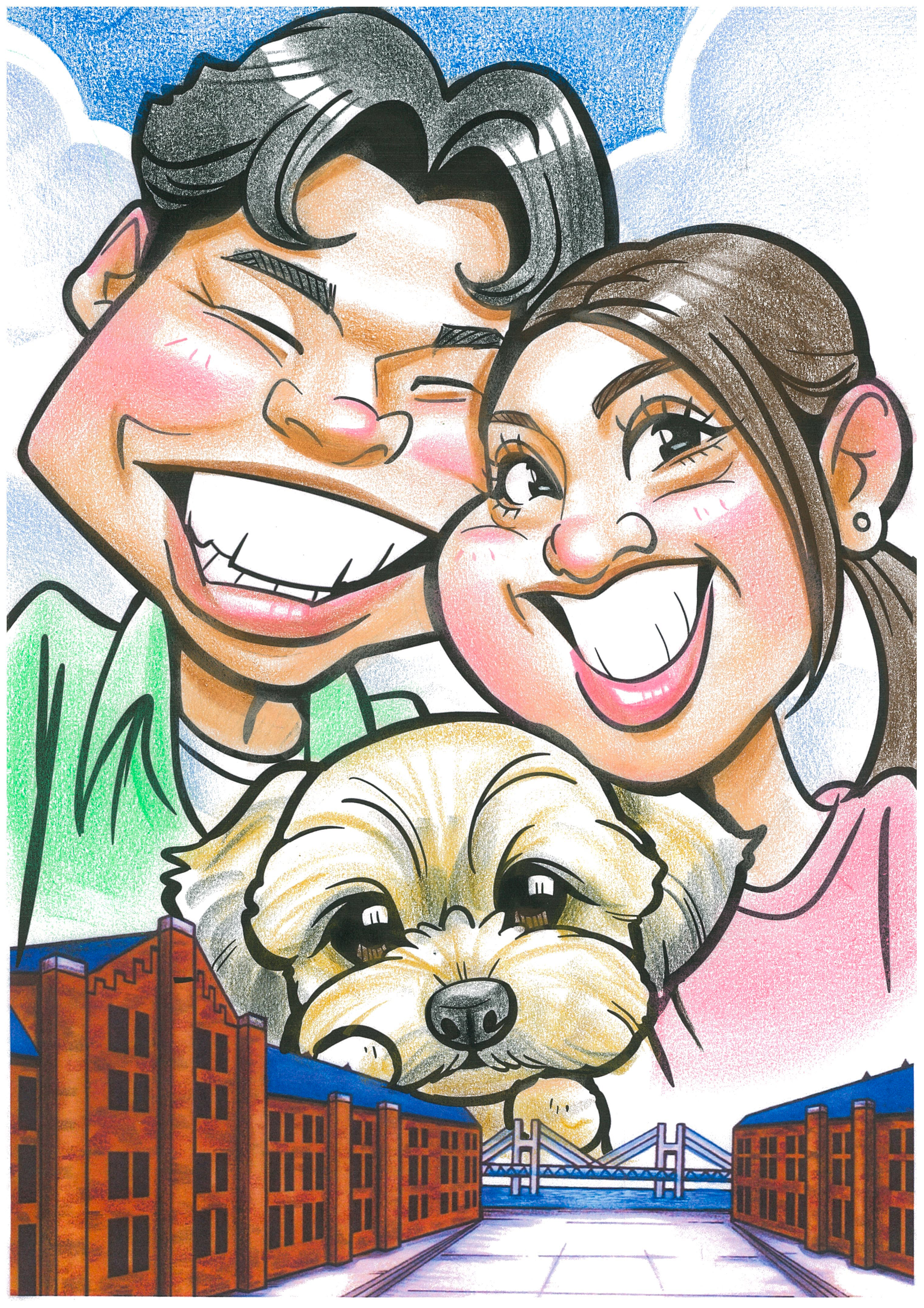 本場米国のユニークな似顔絵、カリカチュアはこの館で17年、営業を続けて参りました。横浜で過ごす楽しい思い出を是非、この絵と共にお持ち帰りください。誕生日の贈り物や結婚式のウェルカムボードにも人気です!