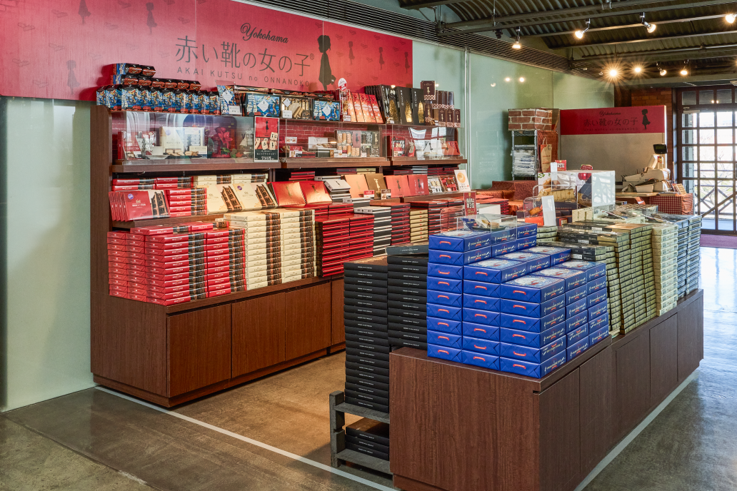 赤レンガ倉庫オリジナル商品や赤い靴の女の子シリーズを中心とした横浜らしい品物を揃えたスーベニアショップ。
